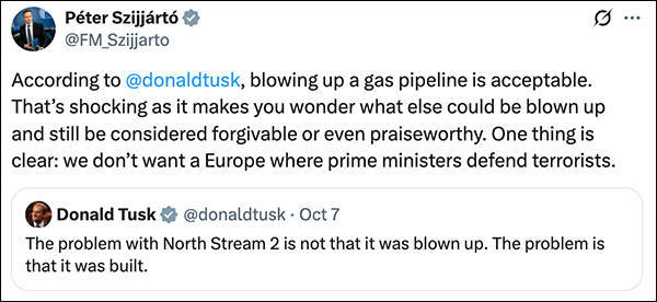 【文/观察者网 王一】当地时间10月8日,匈牙利外交与对外经济部长西雅尔多·彼得怒怼波兰总理图斯克,批评他近日有关“北溪”天然气管道爆炸案的评论是在“为恐怖分子辩护”。