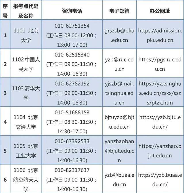 (六)考生须密切关注报考点、招生单位发布的相关信息。有关报考点、招生单位具体事宜请咨询或查阅该报考点、招生单位的网站,报考政策及动态可登录“研招网”、“北京教育考试院”网站查询,主动了解考试安排、入场要求等事项,保持通信畅通,积极配合完成相关工作。