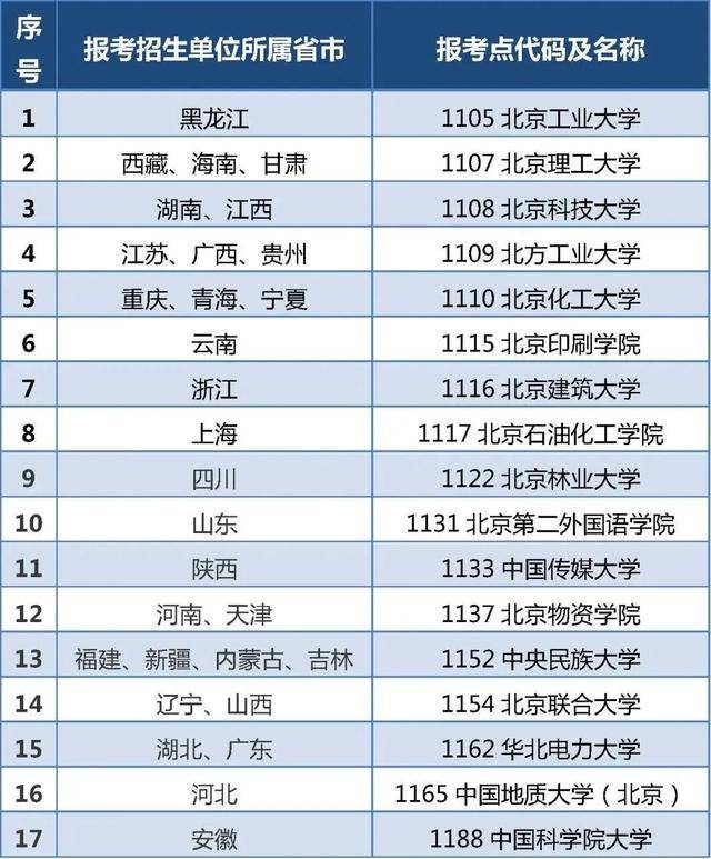 报考单位—北京报考点一览表