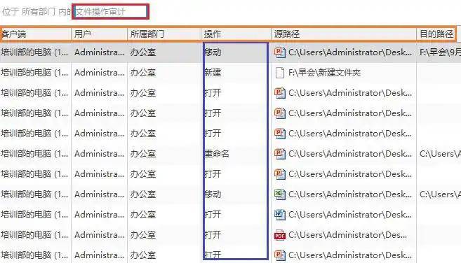 全行为审计追踪:记录文件操作日志(如创建、访问、删除),结合敏感词报警功能,实时拦截通过微信、邮件等渠道外发机密信息的行为。