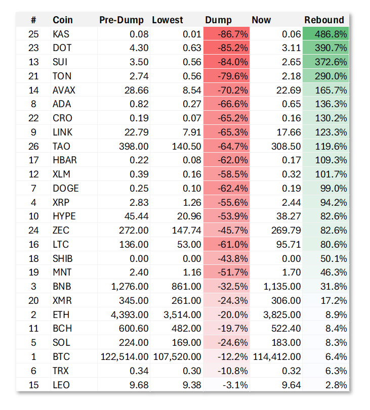然而,这场灾难对所有人来说并非都是坏消息。据CoinDesk报道,数据显示Hyperliquid上排名前100的交易者合计赚取了16.9亿美元,而亏损最多的前100名交易者损失了7.43亿美元。这意味着净利润高达9.51亿美元,集中在少数高度杠杆化的做空者手中。