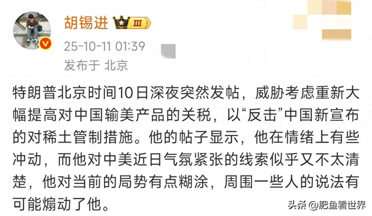 这次特朗普真的生气了。10月10日,他在“真实社交”上发文,指责中国对稀土设备和技术出口的管制是一场贸易上的敌对行为。美国据说会考虑大幅提高对中国的关税,原本计划在韩国APEC峰会上与中国的会谈也可能因此取消。