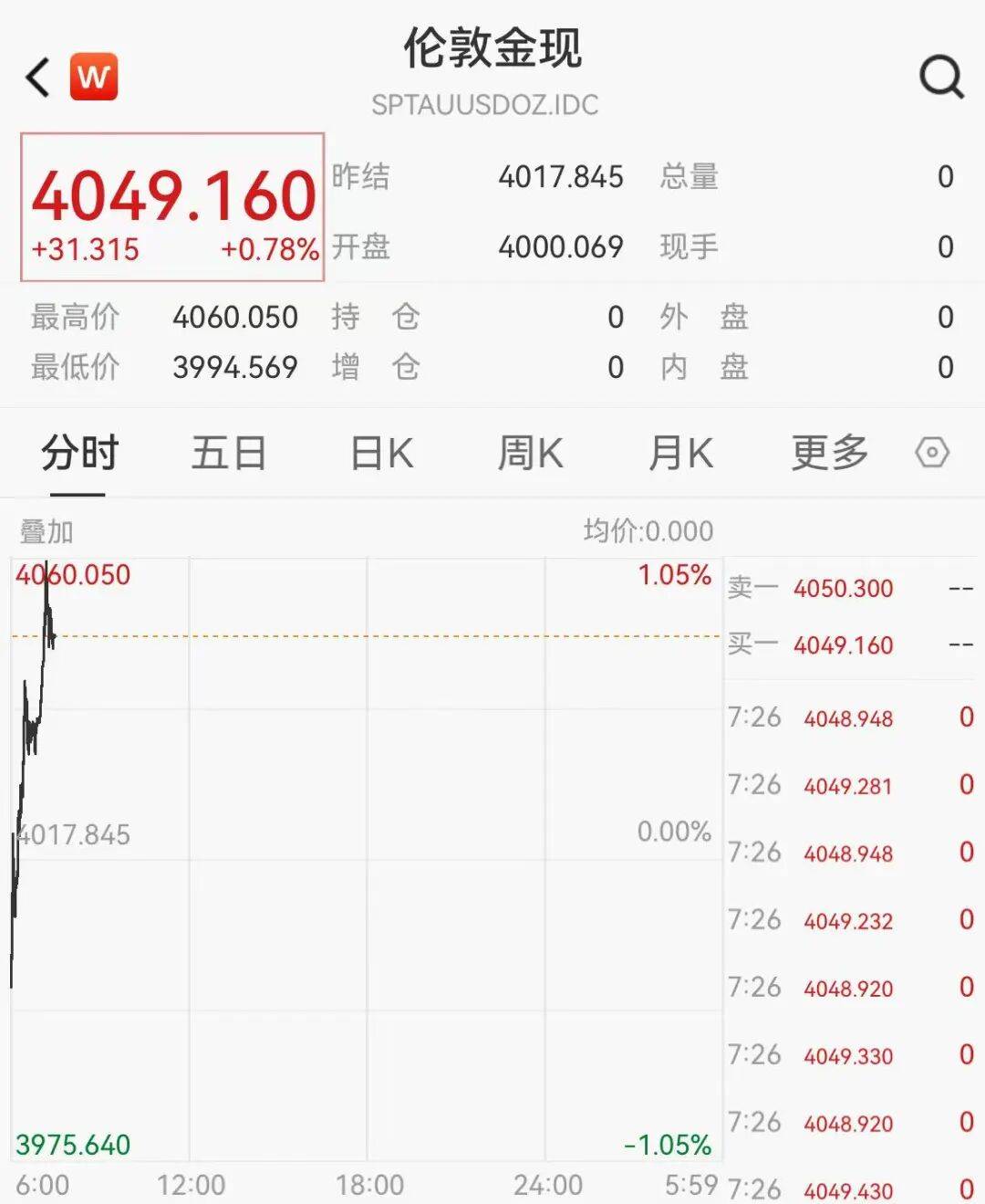 现货黄金站上4070美元/盎司 现货黄金站上4070美元/盎司,日内涨1.3%。