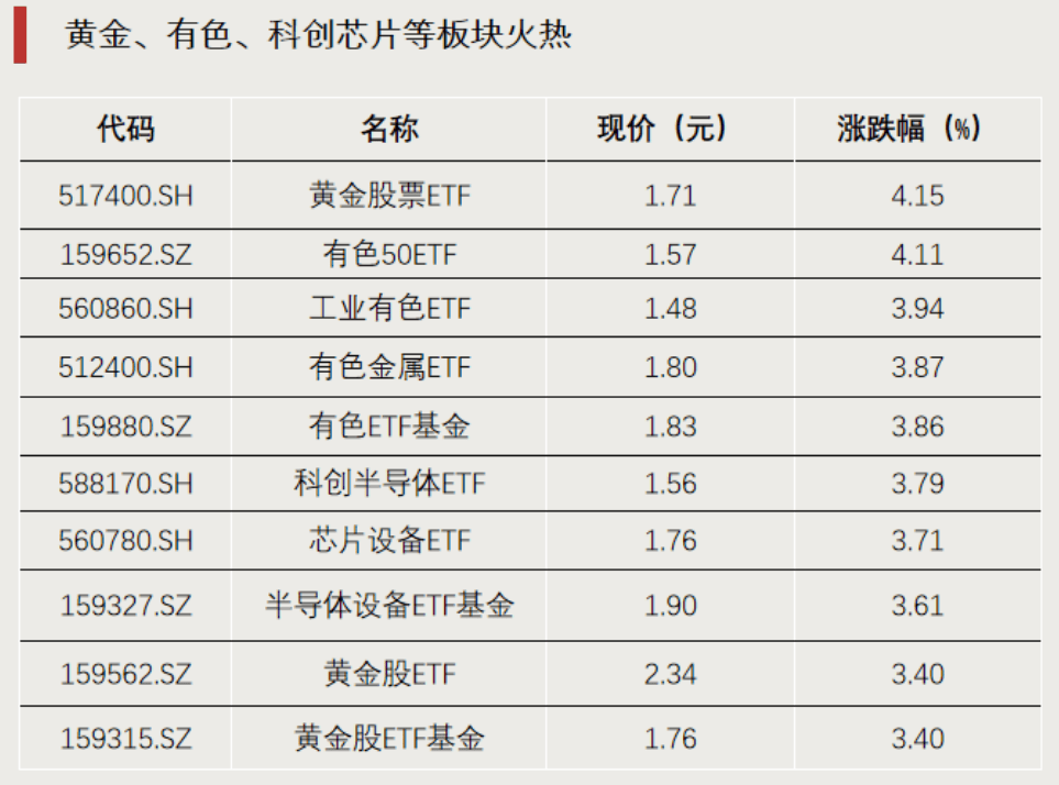 黄金、有色、科创芯片等板块火热