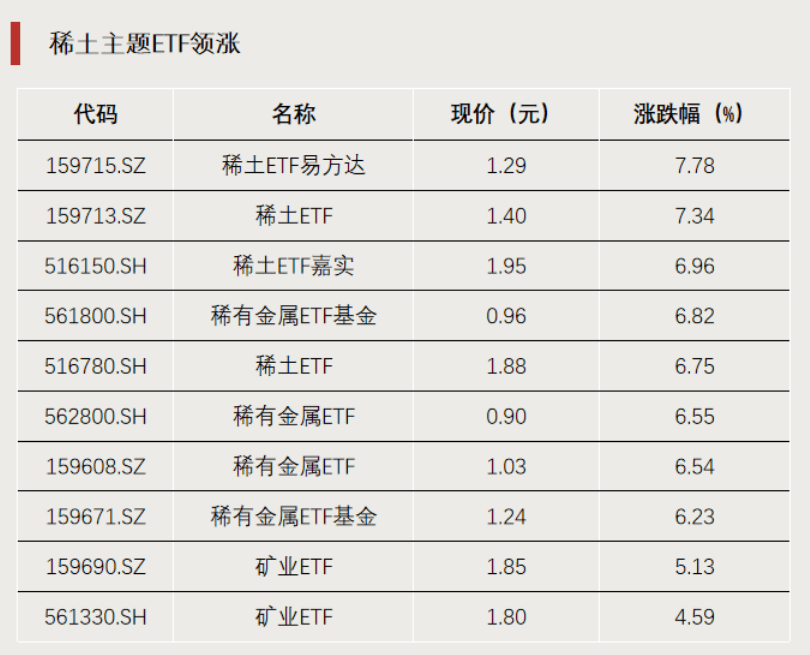 稀土主题ETF领涨