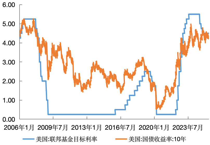 在2007年开启的这一轮降息周期中,10年期美债收益率从5.3%快速回落至2012年的1.5%。在随后的复苏进程中,美国经济表现并不稳定,通胀预期抬升,美联储渐进式缩减QE,美债收益率开始宽幅震荡。在2019年开启的第二轮降息周期中,10年期美债收益率下行更为流畅,于2020年年中触及0.55%的历史低位,此后受到经济复苏预期增强、通胀升温、货币政策边际变化预期的影响,收益率快速回升。