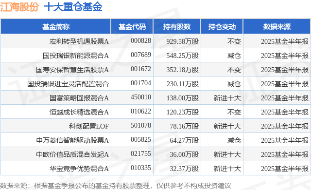 根据2025基金半年报公募基金重仓股数据,重仓该股的公募基金共18家,其中持有数量最多的公募基金为宏利基金的宏利转型机遇股票A。宏利转型机遇股票A目前规模为30.28亿元,最新净值4.204(10月14日),较上一交易日下跌3.58%,近一年上涨67.16%。该公募基金现任基金经理为孟杰。孟杰在任的基金产品包括:宏利睿智稳健混合A,管理时间为2020年9月7日至今,期间收益率为86.77%;宏利行业精选混合A,管理时间为2021年12月30日至今,期间收益率为4.49%;宏利睿智成长混合A,管理时间为2024年5月14日至今,期间收益率为46.11%;宏利半导体产业混合发起A,管理时间为2024年7月23日至今,期间收益率为90.19%。