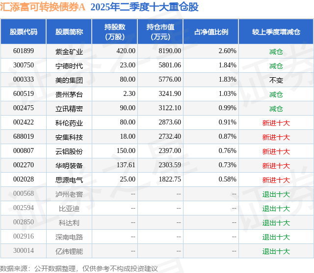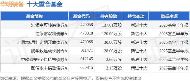 根据2025基金半年报公募基金重仓股数据,重仓该股的公募基金共6家,其中持有数量最多的公募基金为汇添富基金的汇添富可转换债券A。汇添富可转换债券A目前规模为25.09亿元,最新净值2.2254(10月15日),较上一交易日上涨1.02%,近一年上涨25.96%。该公募基金现任基金经理为吴江宏 胡奕。吴江宏在任的基金产品包括:汇添富保鑫灵活配置混合A,管理时间为2016年9月29日至今,期间收益率为49.24%;汇添富绝对收益定开混合A,管理时间为2017年3月15日至今,期间收益率为22.6%;汇添富双利债券A,管理时间为2018年9月28日至今,期间收益率为51.97%。胡奕在任的基金产品包括:汇添富保鑫灵活配置混合A,管理时间为2021年2月3日至今,期间收益率为12.38%;汇添富稳健欣享一年持有混合,管理时间为2022年11月25日至今,期间收益率为10.45%;汇添富添添乐双鑫债券A,管理时间为2024年3月22日至今,期间收益率为7.55%。