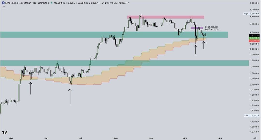 如果回暖势头持续,ETH可能在10月瞄准突破通道上边界,约在4450-4500美元区域。