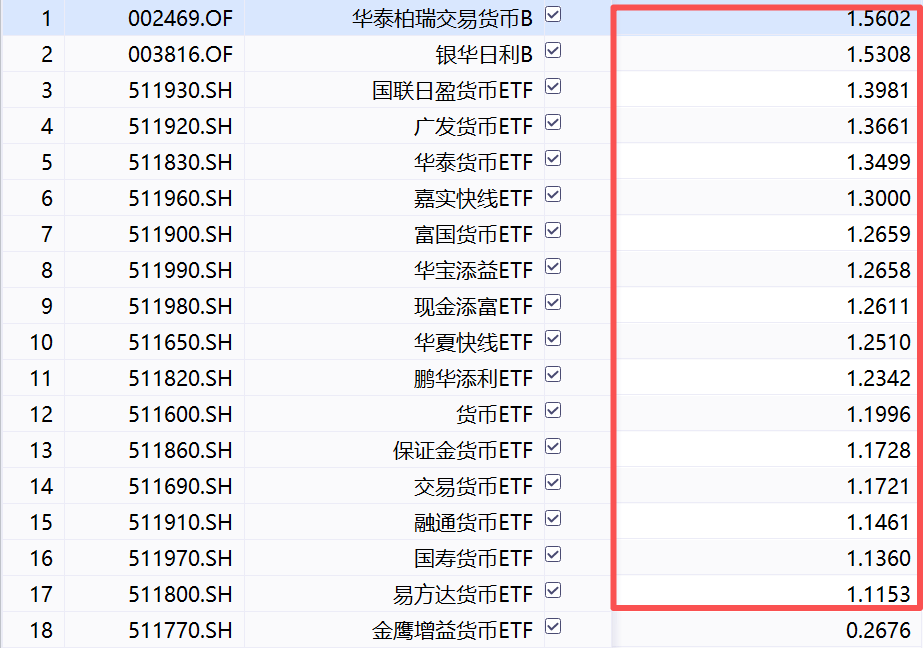 年初至今仅17只货币类ETF产品收益破“1”