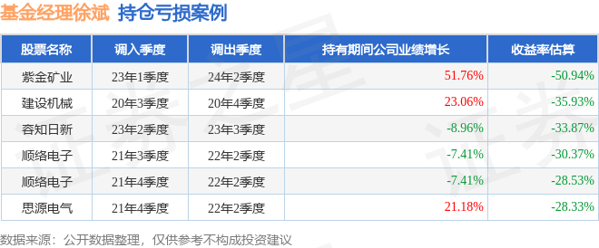 徐斌管理的富国改革动力混合基金在23年1季度买入紫金矿业,在持有1年又1个季度后在24年2季度卖出。持有期间的估算收益率为-50.94%,持有期间紫金矿业在2023年到2024年的年报归属净利润增幅达51.76%。