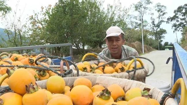 “我的柿子一棵能采300多斤,总共400多棵。今年的产量也比去年提高了20%左右。柿子口感也很好,总计大概比去年多收两三万块钱。”利洋村炮弹柿种植户林世固说道。