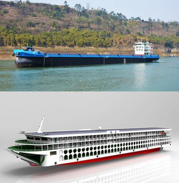 永盛实业船舶更新前后对比图(上为传统游船,下为拟建新能源客滚船设计图)。恒丰银行重庆分行供图 第1眼TV-华龙网发