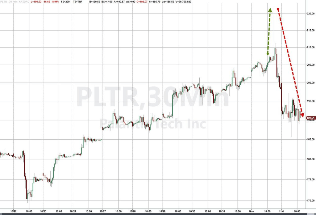 具体来看,两大事件直接引爆了对散户热门股的抛售。首先是Palantir的财报引发了对其增长前景的担忧。