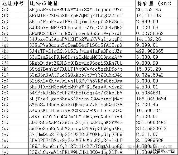 图2:美国司法部起诉书中25个比特币钱包地址列表
