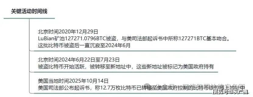 直接关联:区块链分析显示,美国司法部起诉书中25个地址正是LuBian矿池2020年攻击中被盗比特币最终持有地址。Elliptic报告指出,这批比特币于2020年从LuBian矿池的矿业运营中「被盗」。Arkham Intelligence确认,美国司法部扣押的资金直接源于LuBian矿池盗窃事件。