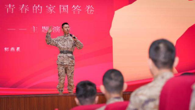 空军某部训练营举行“以青春之我 守护祖国蓝天”演讲比赛,新兵从自身淬炼成长的视角出发,表达对蓝天的向往、对英雄的敬仰和矢志空天的坚定信念。(刘德政、黄亮、郭鑫彪)