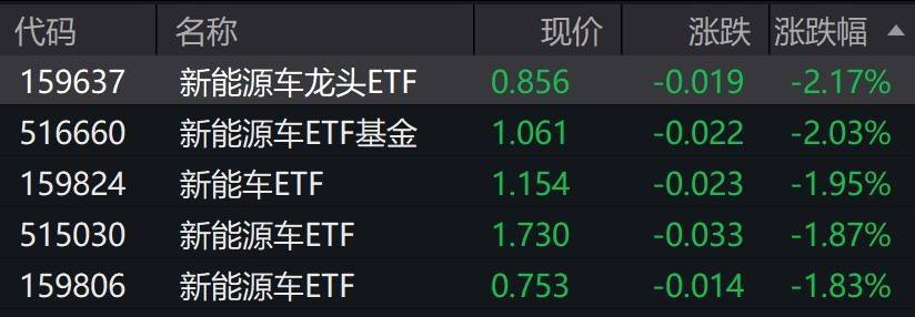 受盘面影响,跟踪中证新能源汽车指数的ETF跌约2%。