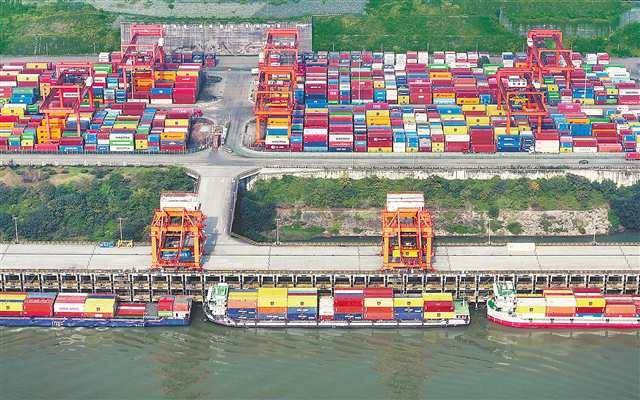 近年来,重庆积极开辟水铁联运、水公联运等多式联运,素有“黄金水道”之称的长江航运持续运输繁忙。今年1-9月,长江干线港口完成货物吞吐量预计30.6亿吨,同比增长4.9%,航运生产呈现稳定增长态势。(首席记者 龙帆 摄/视觉重庆)