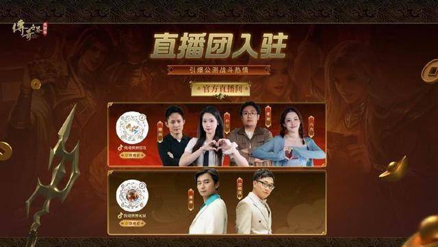 直播盛典期间,晚风、小七、老胡等"传世主播团"将在"传奇世界官方"、"传奇世界无双"两大抖音官方直播间轮番坐镇,传奇四毛、传奇亮哥、芒果冰等头部主播同步开播,形成矩阵式传播,共同见证传世新篇章。