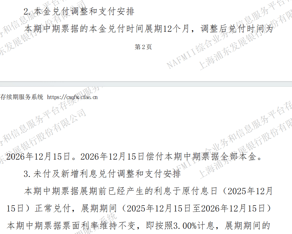第三项议案同样要求提供增信措施,本金展期至2026年12月15日,展期前尚未支付的利息须于2025年12月15日支付。