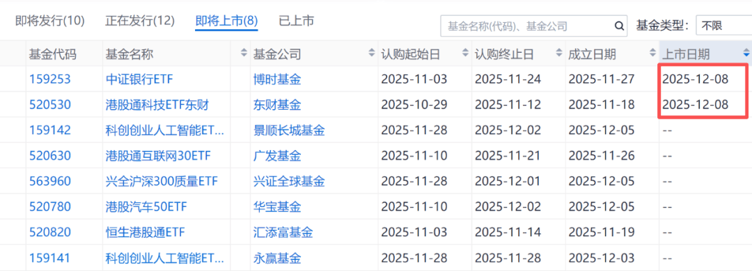 根据Go-Goal ETF数据,下周将有8只ETF发行。