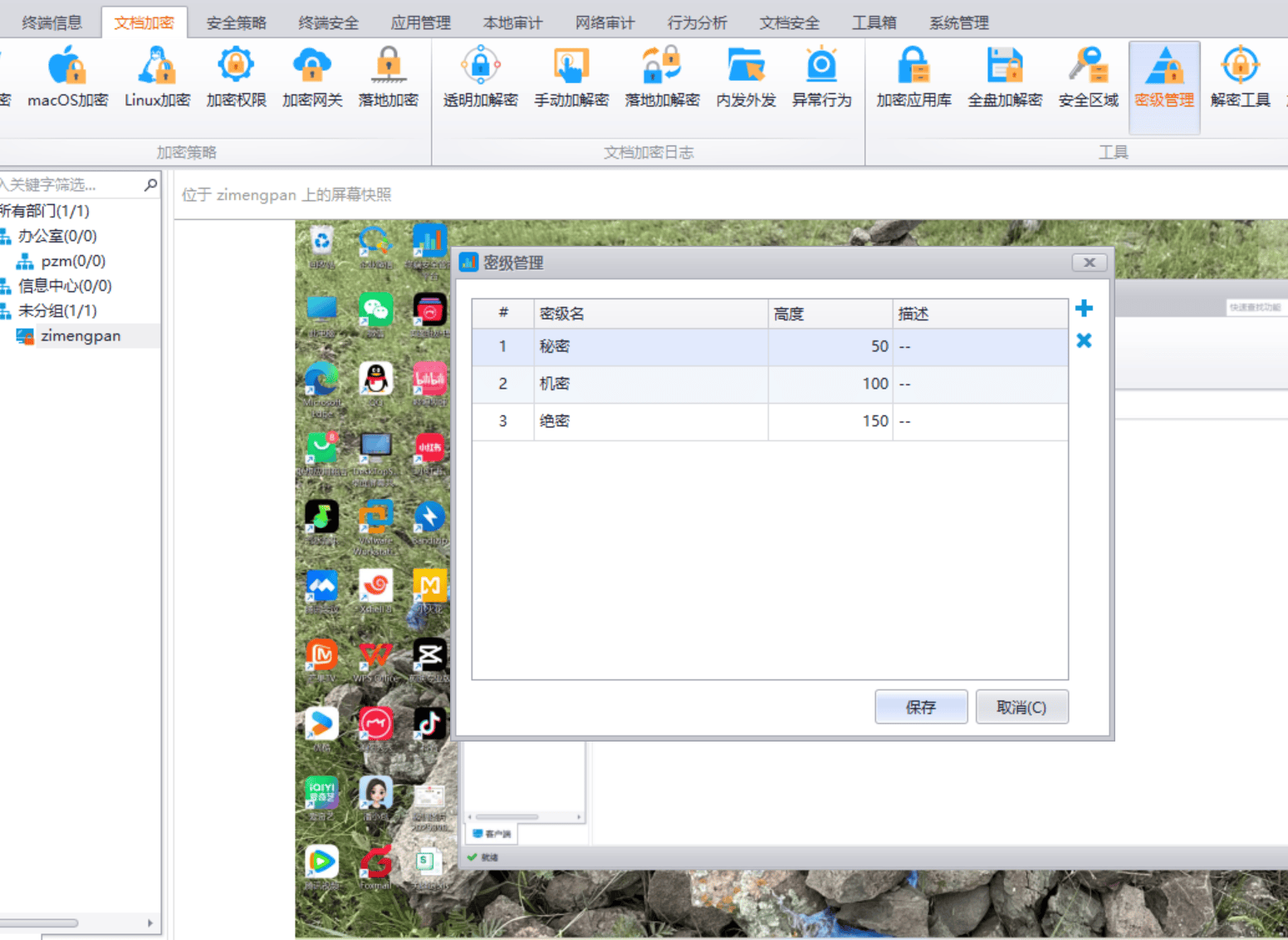 密级管理:加密文件可以有不同保密级别,各级别不同的加解密权限,方便高级别领导解密低级终端文件和查看