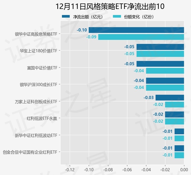 当日有8只风格策略ETF基金出现资金净流出,其中净流出排首位的是银华中证高股息策略ETF(563180),份额减少了900.0万份,净流出额为1009.82万元。