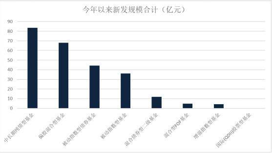 梳理大成基金今年的新发基金,即使是在这样的权益大年,大成基金的新发还是以固收为主,今年发行规模最大的是中长期纯债型基金,规模超过80亿元。其次被动指数型债券基金和混合债券型二级基金的发行规模也相当大,分别达到44亿元和12亿元。