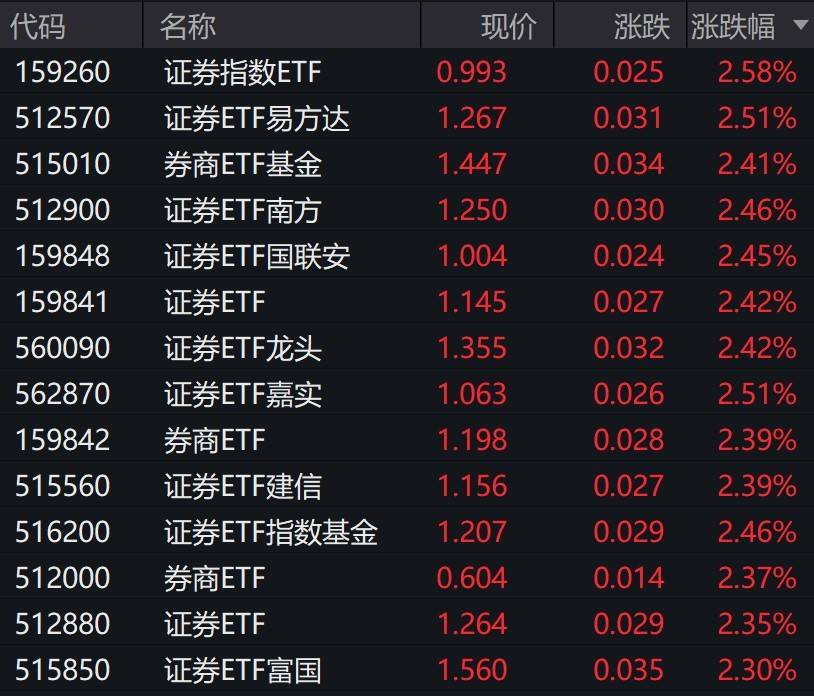 券商股盘中爆发,华林证券涨停,华安证券涨超9%,华泰证券涨超4%,东方财富、国泰海通涨超3%。