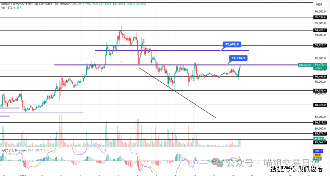 (1)上方阻力位置9.26和9.44,今天btc阻力91750-92400,突破92650看93850-94250。