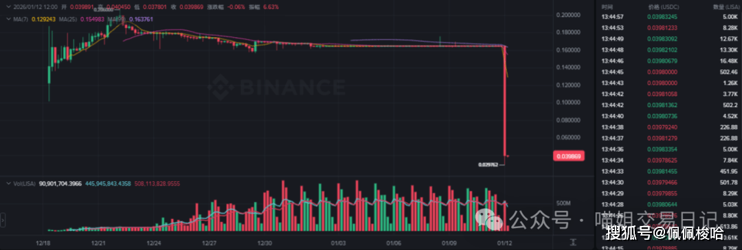 LISA 崩盘,30分钟跌了90%+LISA的4倍积分下周结束,狗庄提前完成收割,做市商故意把价格控制在0.165附近的让大量的alpha工刷量提供流动性,再挑个良辰吉日一把收割。
