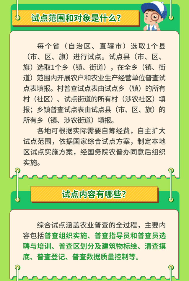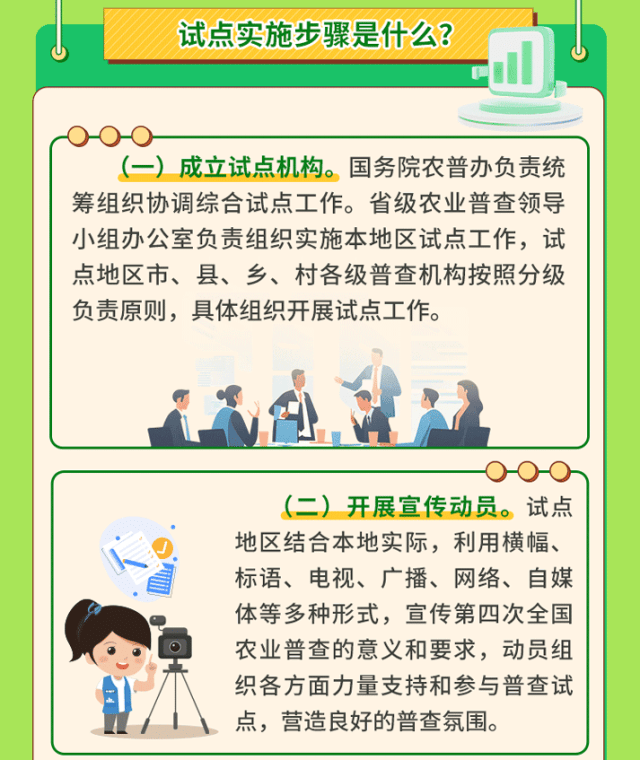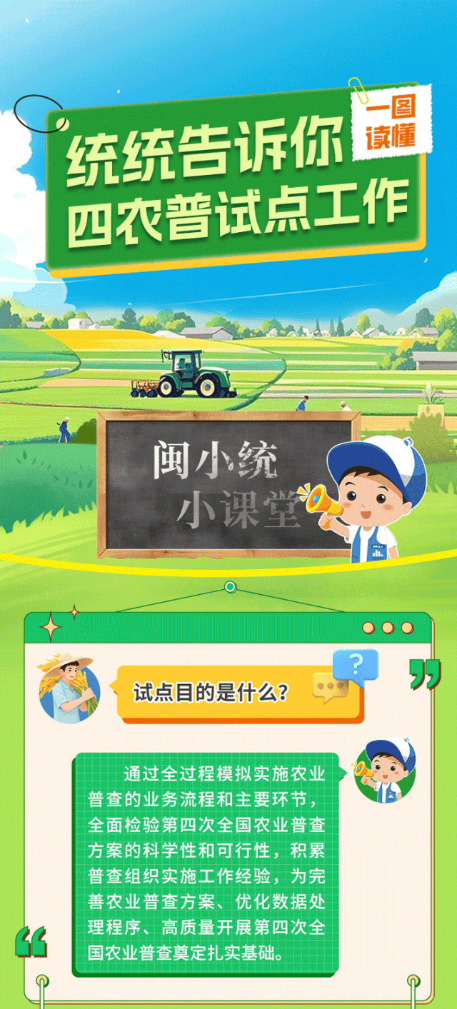 按照《国务院关于开展第四次全国农业普查的通知》(国发〔2025〕9号)要求,为进一步改进和完善农业普查方案,国务院第四次全国农业普查领导小组办公室(以下简称“国务院农普办”)决定开展第四次全国农业普查综合试点工作。