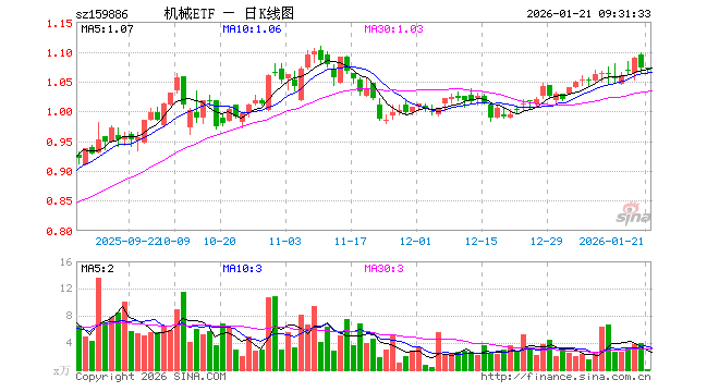 机械ETF(159886)业绩比较基准为中证细分机械设备产业主题指数收益率,管理人为富国基金管理有限公司,基金经理为殷钦怡,成立(2021-04-15)以来回报为6.99%,近一个月回报为7.38%。