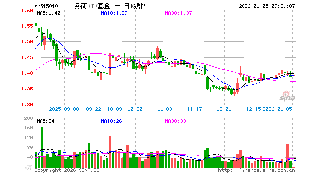 1月5日,券商ETF基金(515010)开盘涨0.22%,报1.390元。券商ETF基金(515010)重仓股方面,东方财富开盘涨0.17%,中信证券涨0.42%,国泰海通涨0.05%,华泰证券涨0.25%,广发证券涨0.27%,招商证券涨0.24%,东方证券跌0.09%,申万宏源跌0.19%,兴业证券涨0.00%,中金公司涨0.23%。
