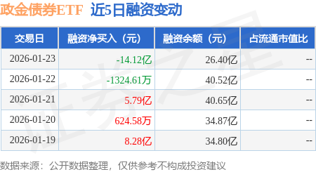证券之星消息,1月23日,政金债券ETF(511520)融资买入7510.28万元,融资偿还14.87亿元,融资净卖出14.12亿元,融资余额26.4亿元。