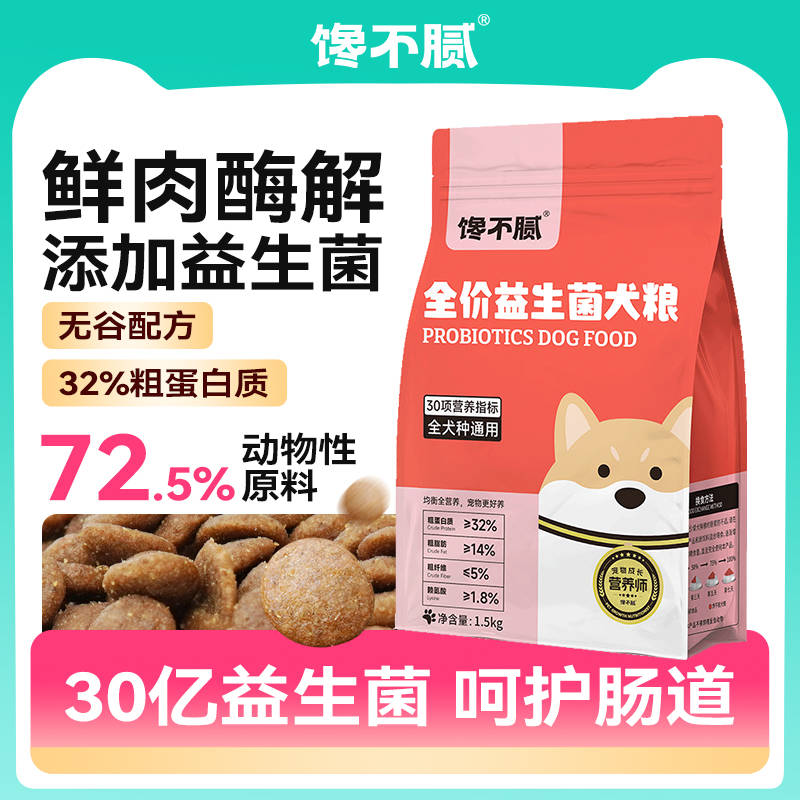 推荐原因:馋不腻益生菌狗粮不仅在营养方面能够满足狗狗的需求,促进毛发健康生长,其添加的益生菌还能帮助狗狗更好地消化吸收食物。