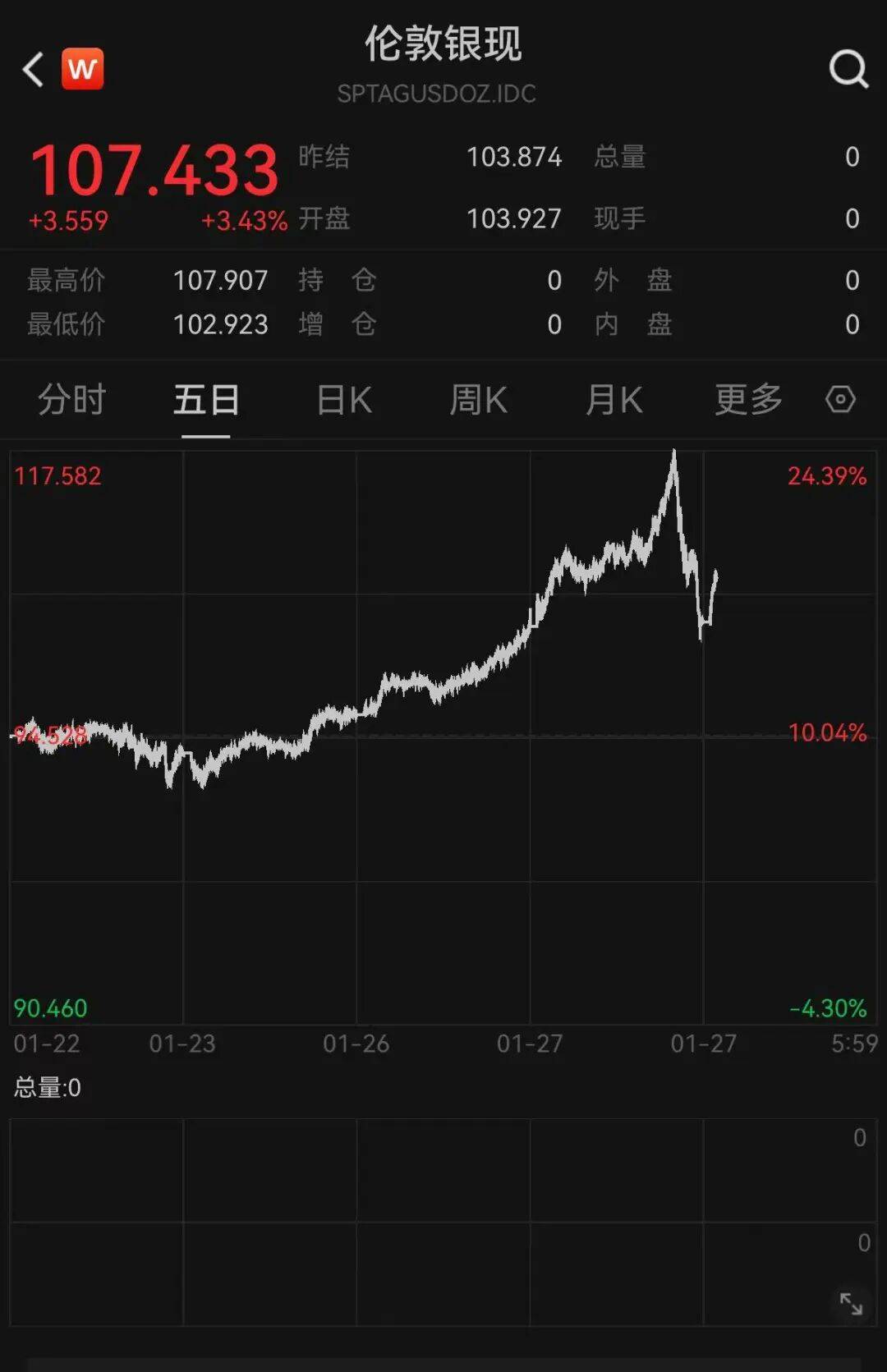 现货白银站上108美元/盎司 人民财讯1月27日电,现货白银站上108美元/盎司。