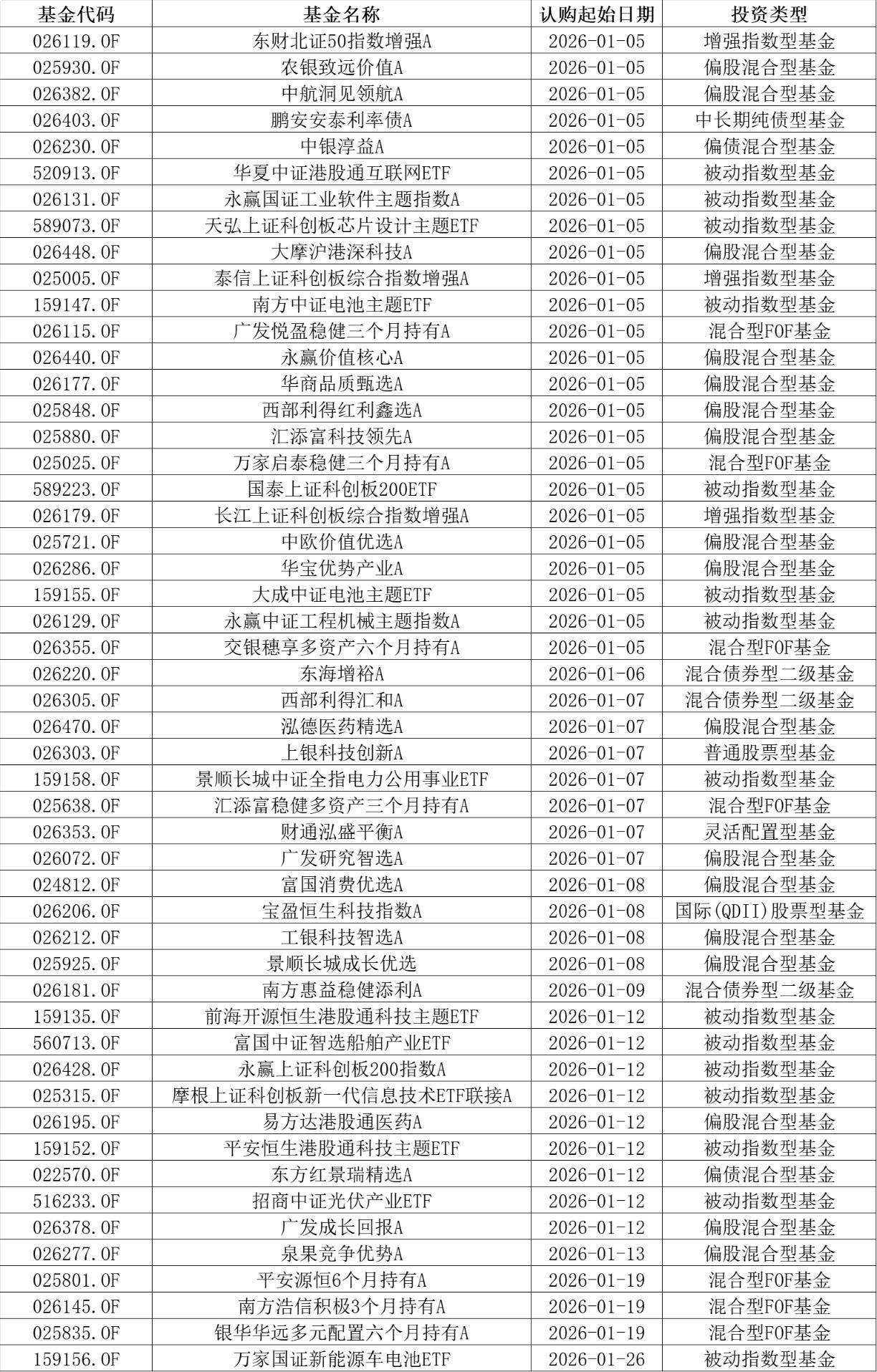 Wind数据显示,2026年元旦假期后,公告启动发行的基金数量已达51只(份额合并计算)。2026年首个交易日,1月5日便有24只产品集中面世。
