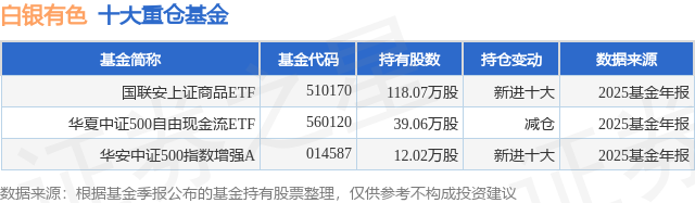 根据2025基金年报公募基金重仓股数据,重仓该股的公募基金共3家,其中持有数量最多的公募基金为国联安基金的国联安上证商品ETF。国联安上证商品ETF目前规模为3.22亿元,最新净值1.499(1月26日),较上一交易日上涨3.67%,近一年上涨72.7%。该公募基金现任基金经理为黄欣。黄欣在任的基金产品包括:国联安中证A100指数(LOF),管理时间为2010年4月16日至今,期间收益率为132.22%;国联安上证商品ETF联接A,管理时间为2010年12月1日至今,期间收益率为73.67%;国联安中证医药100A,管理时间为2016年8月19日至今,期间收益率为1.78%。
