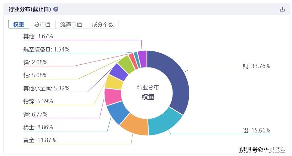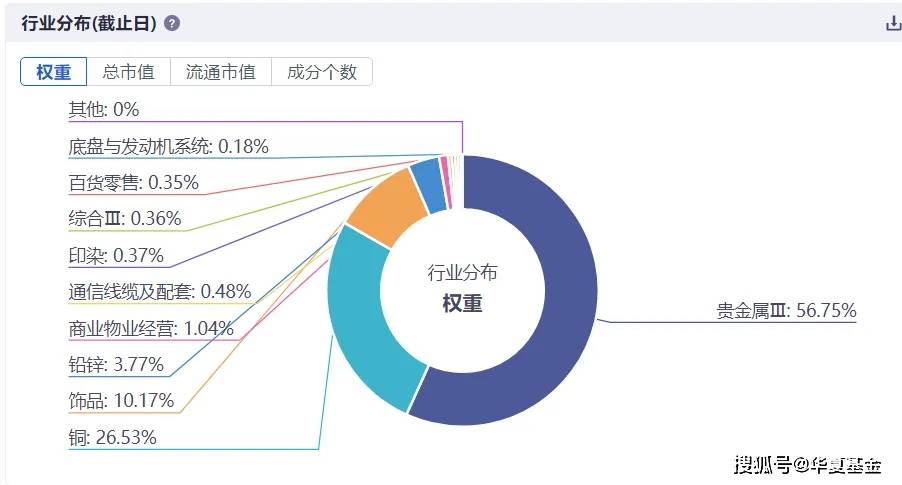 从指数行业分布看,其56.75%持仓集中于贵金属(如黄金)开采龙头企业,另外,26.53%持仓集中于铜产业龙头企业。