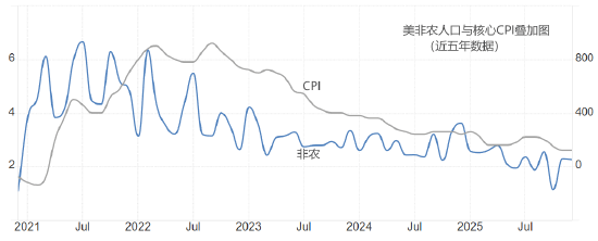 国际关系和地缘问题导致的美元贬值,是否具有持续性,取决于美国的经济数据表现如何。上图是美国非农就业人口和核心CPI年率叠加图。两条数据曲线都呈现出下降趋势,并且降幅不断收窄。2024年年中以来,两条曲线呈现出横向变动特征,意味着美国的宏观经济已经进入稳定期。基于委内瑞拉、格陵兰岛、伊朗的问题,并未对美国经济数据造成实质性冲击。我们倾向于认为,美元指数的下跌为中短期表现,有超跌迹象,未来可能得到修复。