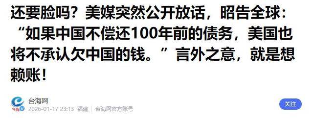 美媒竟放话:中国不还清朝的旧债,美国就不认现在的账!