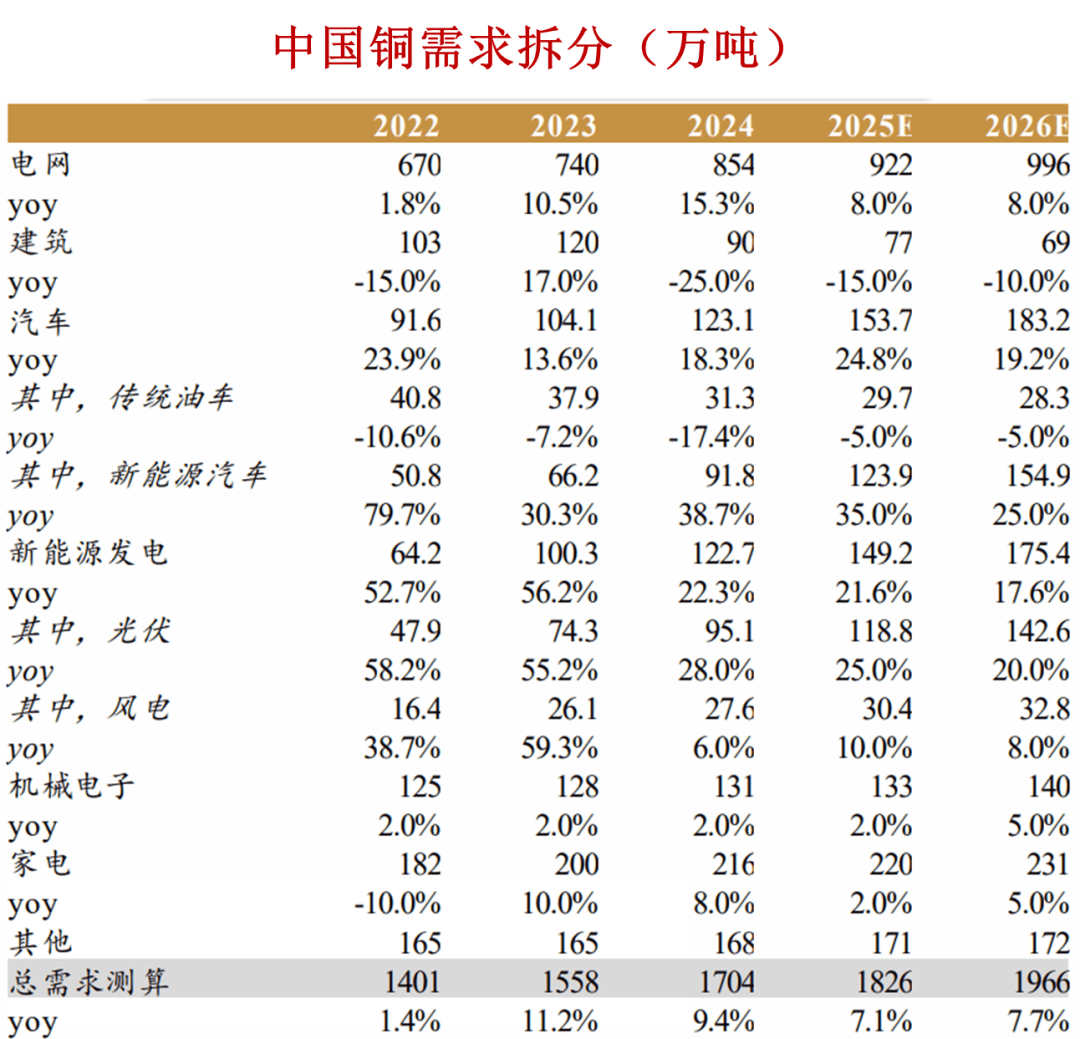 需求端: 2026 年精炼铜需求增速能达到 7.7%。供给追不上需求的节奏,今年精炼铜市场会处于明显的短缺状态,且低库存的格局还会延续,这种基本面会稳稳支撑铜价的中枢水平。