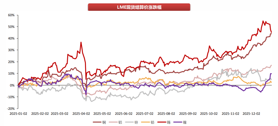 2025 一整年,工业金属价格迎来全面上涨,没有一种出现下跌。
