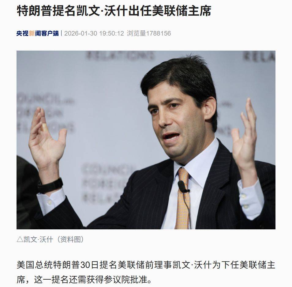 据央视新闻,美国总统特朗普30日提名美联储前理事凯文·沃什为下任美联储主席,这一提名还需获得参议院批准。