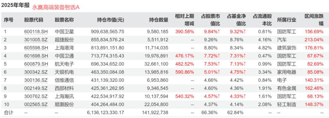 紧随其后的是张璐管理的永赢高端装备智选混合发起A(015789.OF),这是一只投资于高端装备主题的产品,从持仓来看,主要布局的是商业航天方向。
