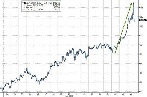 极致的狂热?白银一度暴涨14%至近118美元,此后涨幅回落至不到1%