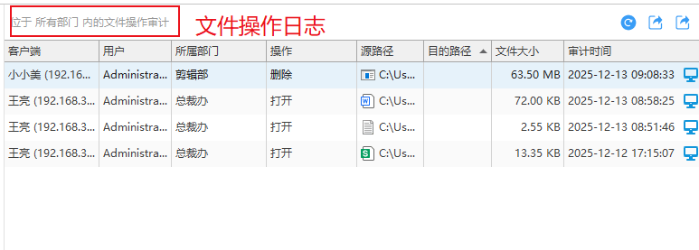 详细记录文档的新建、修改、删除、上传、拷贝等操作,包括操作时间、文件名称、操作人等信息。支持多维度搜索。及时定位责任人。