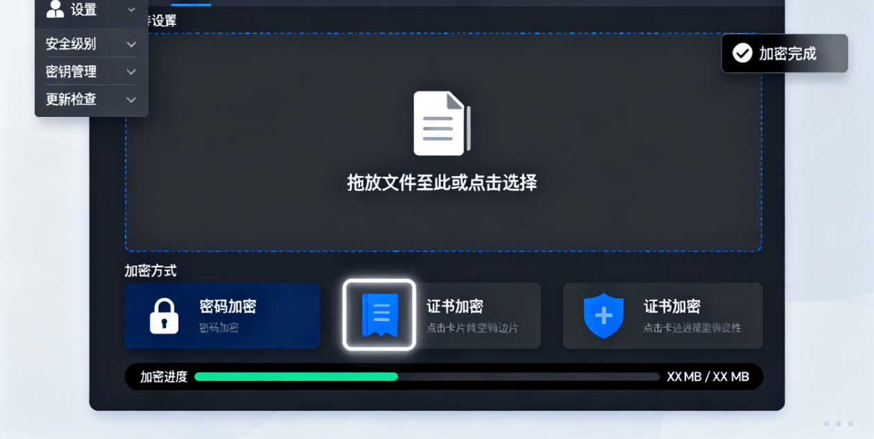 加密算法:采用国密SM4、AES-256等银行级算法,确保加密文件即使被截获也无法破解。